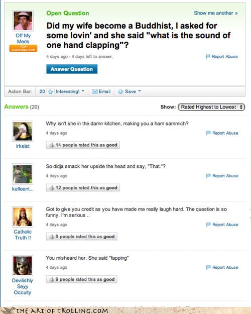 Funny Yahoo! Answers - Picture | eBaum's World from cdn.ebaumsworld.com That allows users to submit questions and answer questions from other users. The latest tweets from yahoo answers (@yahooanswers). Yahoo answers is a community where users ask and answer questions in all subjects of life. Extensions you can install to your browser to do things like access news on yahoo each time you open your browser. Yahoo answers manager suite at a price of just $2495pm. Yahoo answers is a gold mine. Managing your account settings of your yahoo! The official twitter account for yahoo us & ca answers.